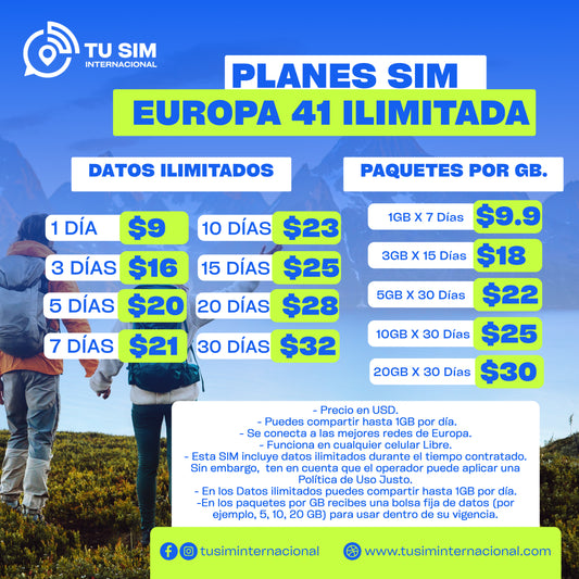 Cobertura internacional en decenas de países (más de 70, según el plan elegido). Consulta la lista específica en cada producto.